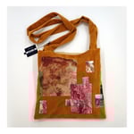 ‘Forage’ is made by a mother and daughter team. It is based on our shared love of using sustainable textiles and developing eco-printed fabrics. We like to think that this bag not only holds the essence of Belle and Sebastian’s performances but also holds on to the places where we travel and forage together. The patches include eco-printed silk with onion skin, rust, oak and sycamore, as well as pigment printed images of our walks beside the Forth and Clyde canal, near our home. The bag invites you to take it on your own foraging trips whether that is out in nature or off to the shops.