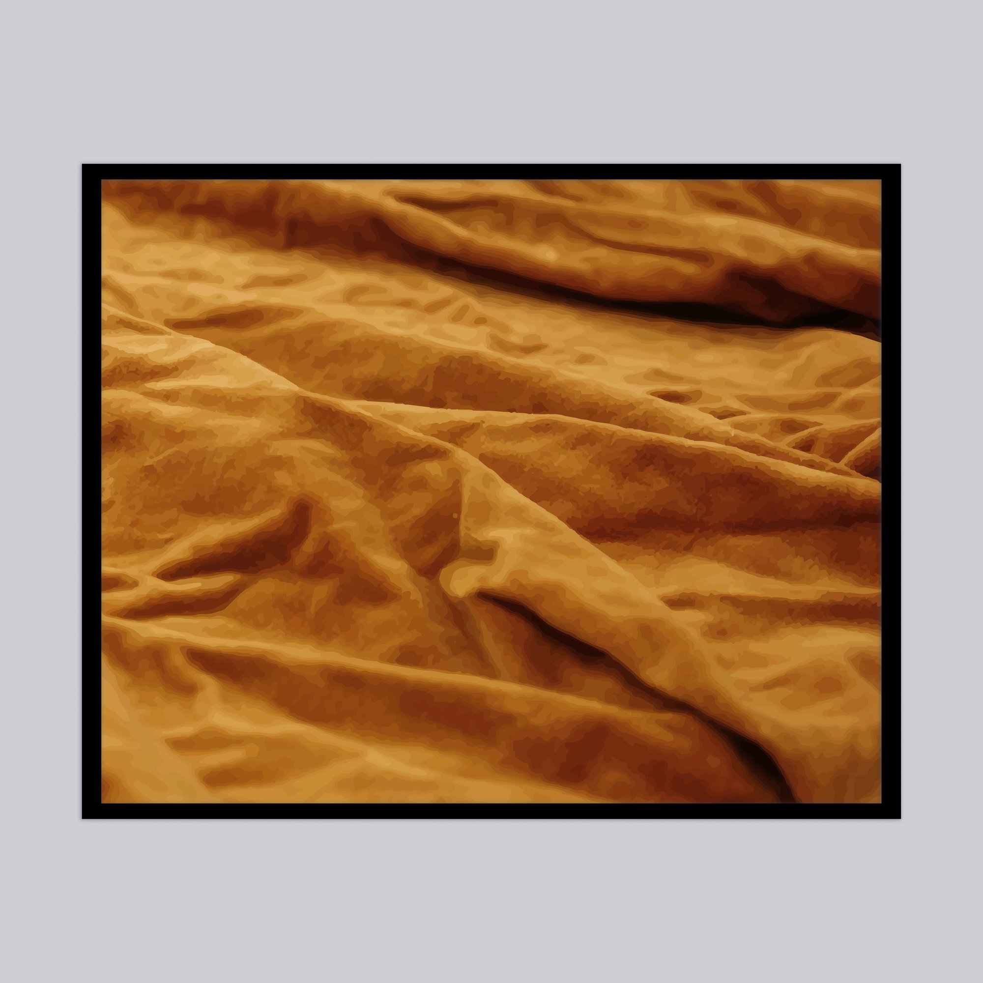 'Intimate Detail' series (16) have the golden fluidity reminisces of landscape and a body at rest. These have been printed on soft velvet and the frames rest on the shelves are unglazed, so you are invited to touch them. 40cm x 50 cm